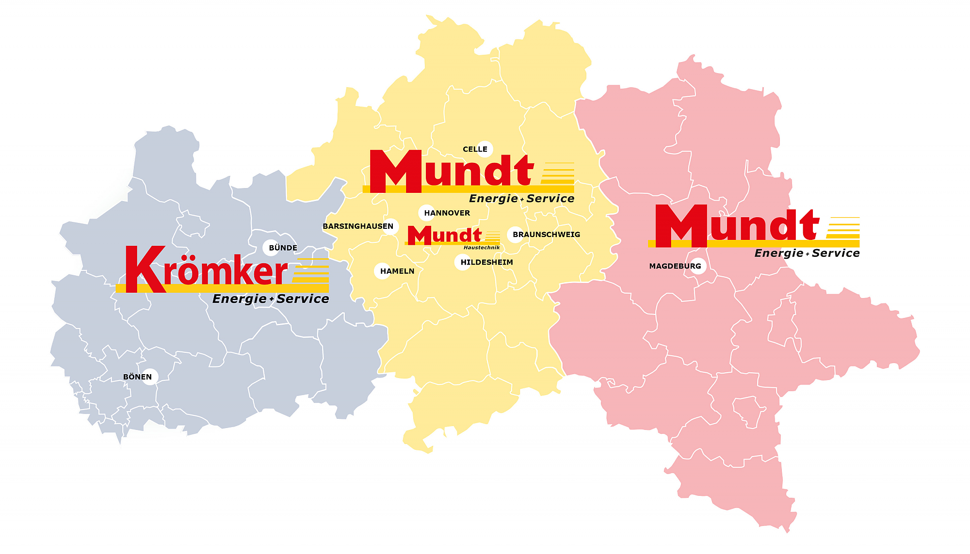 Innerhalb dieses Gebiets verfügt die Mundt-Gruppe über mehrere Standorte, in denen Ihnen persönliche Ansprechpartner zur Verfügung stehen.